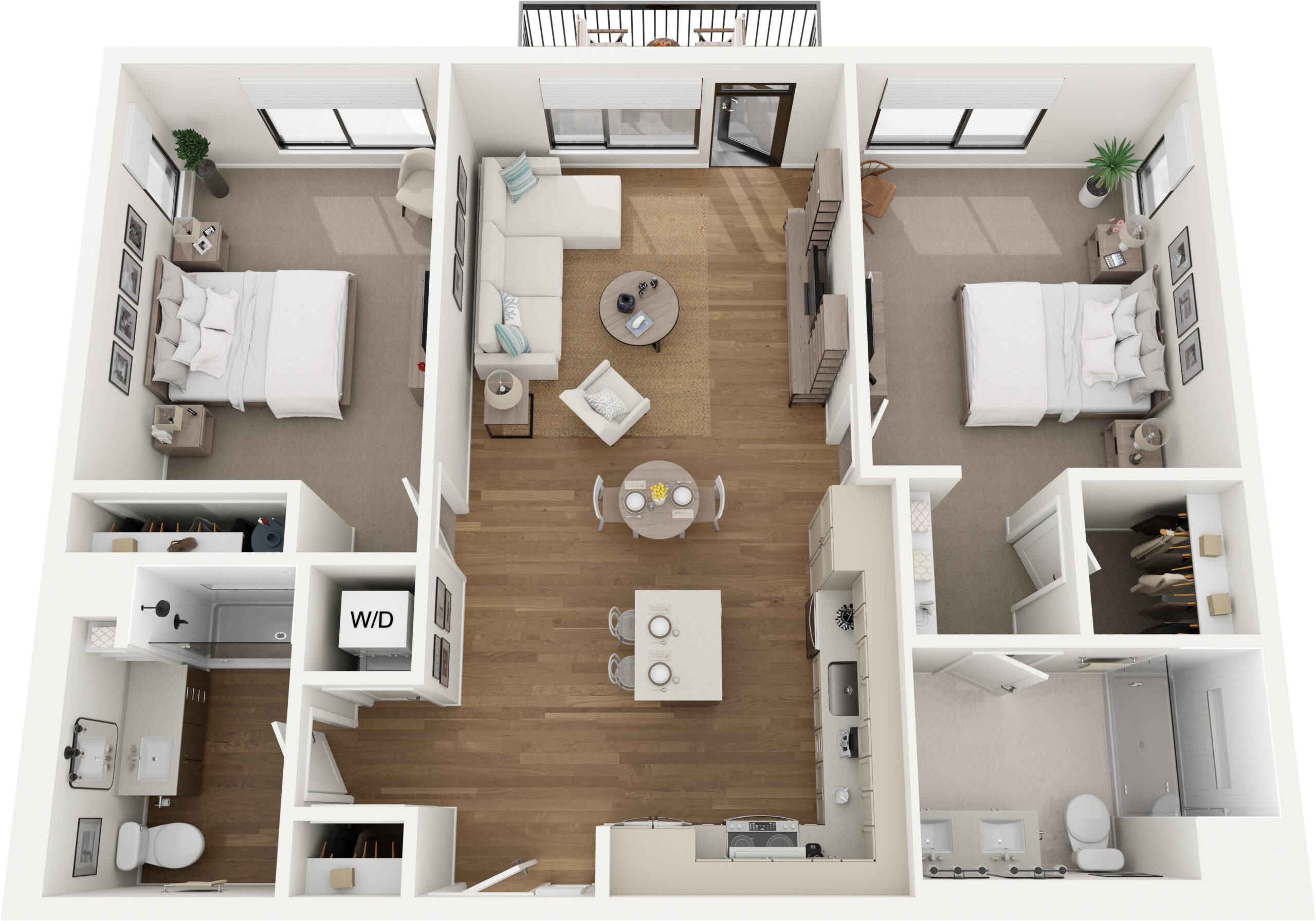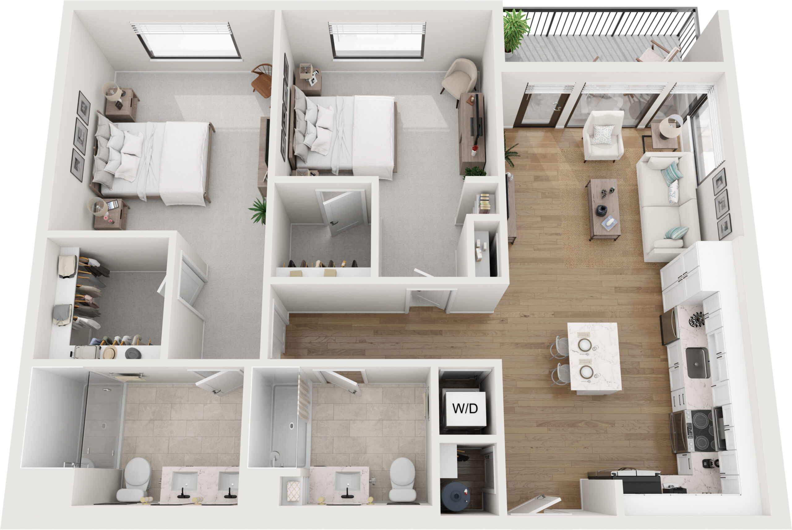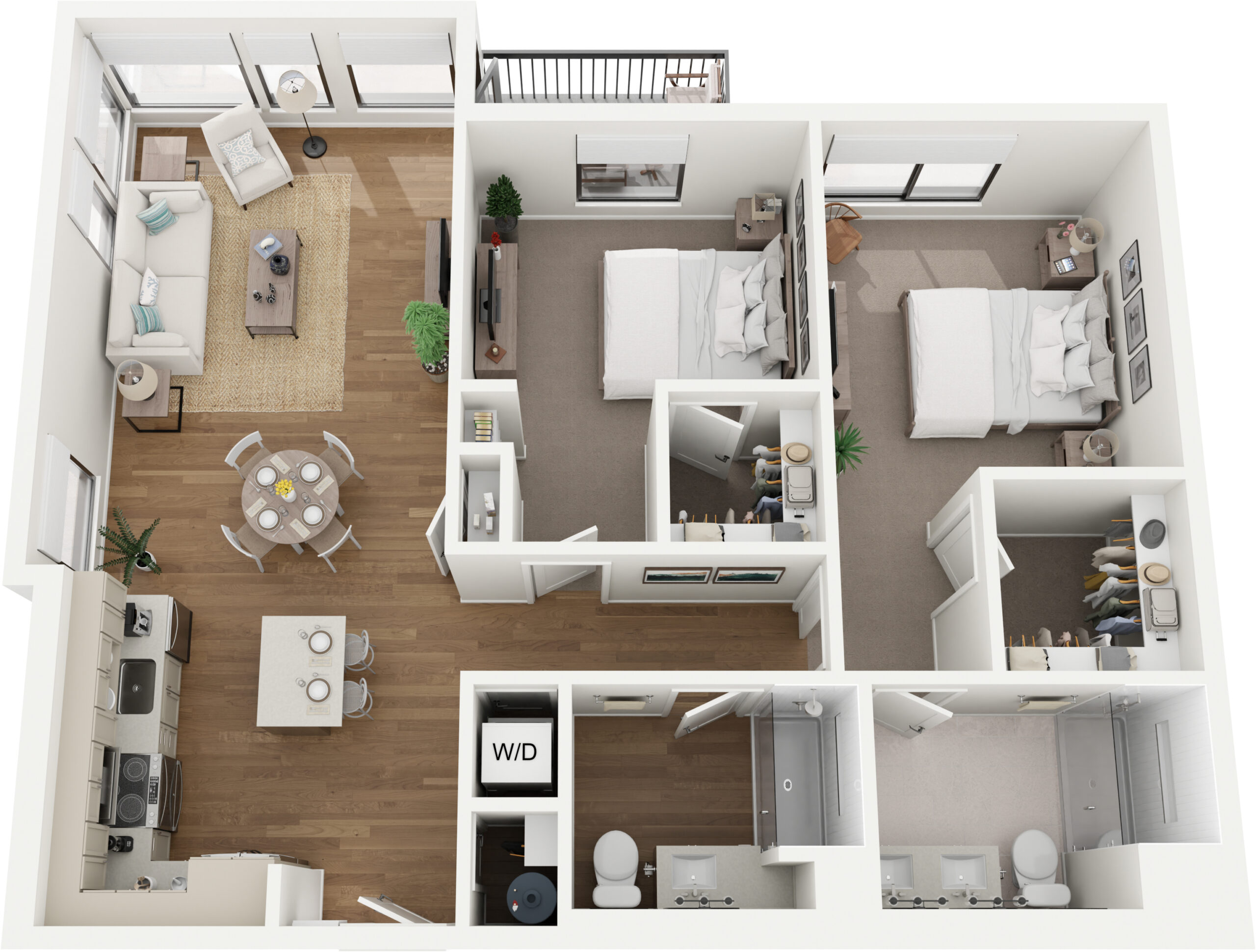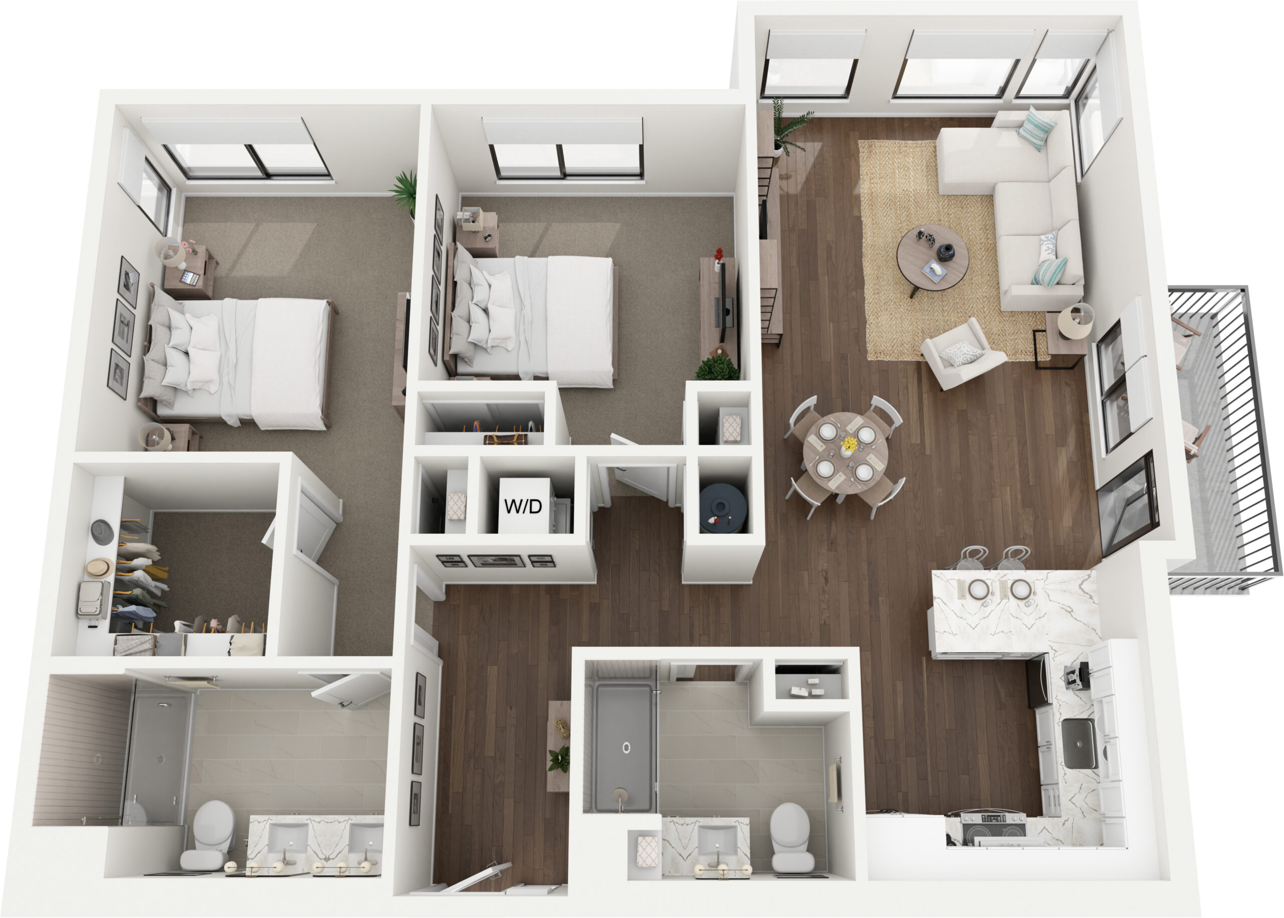 2 Bedroom | 2 Bath | Balcony | 1,277 sq. ft.