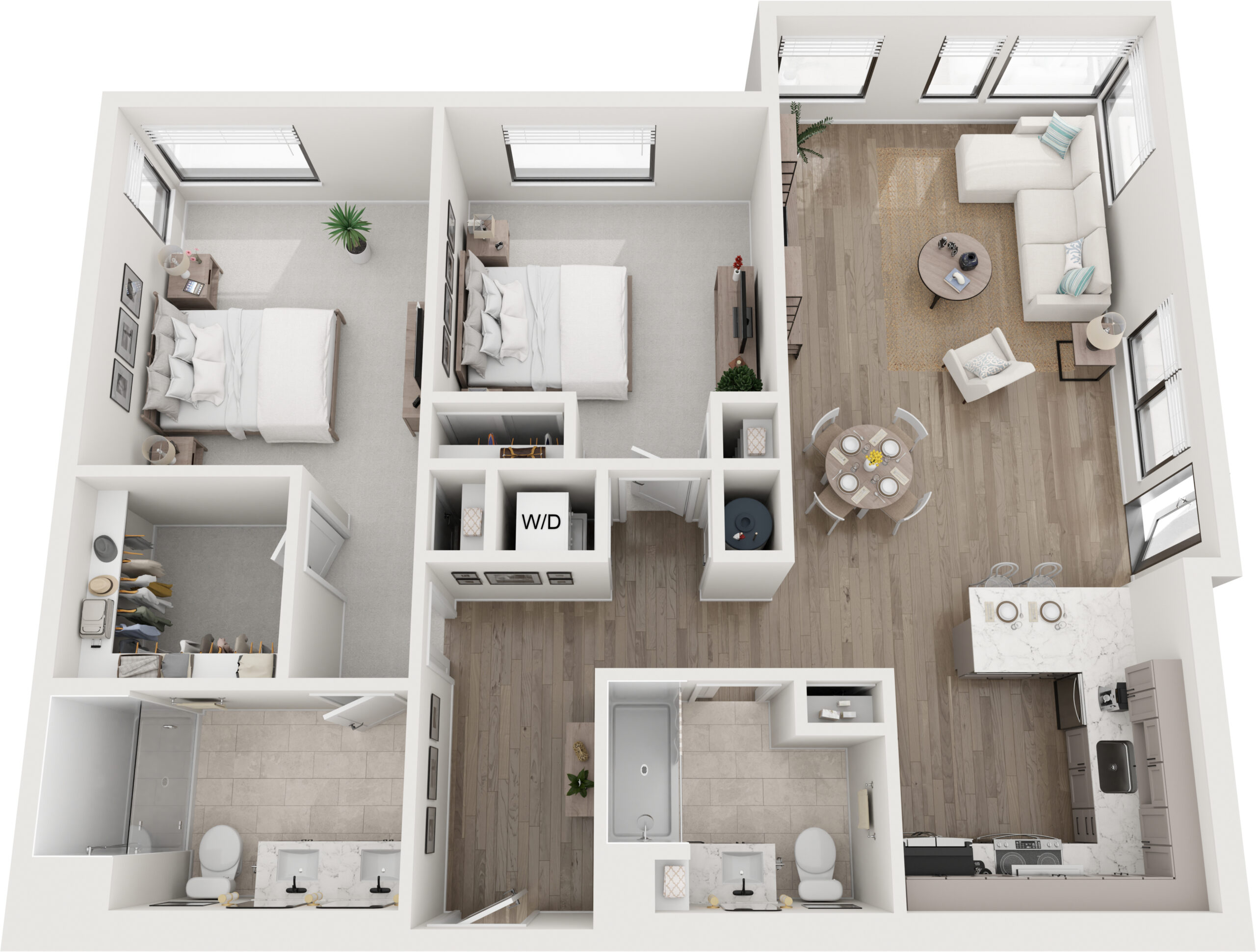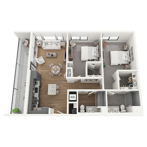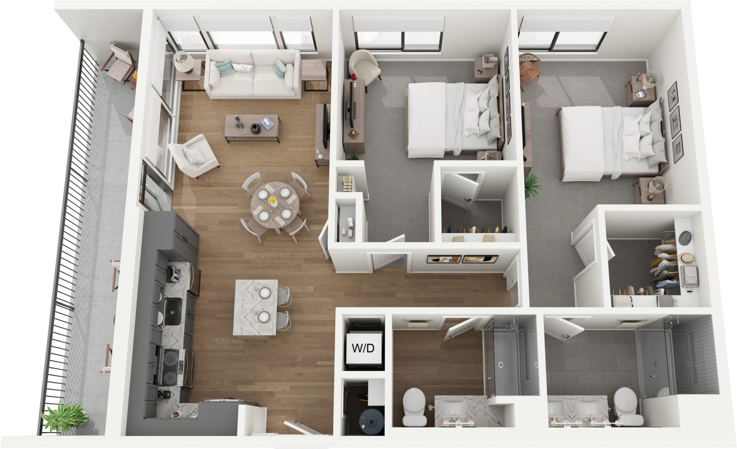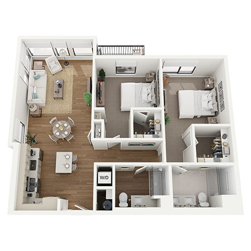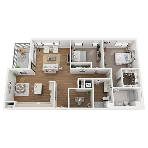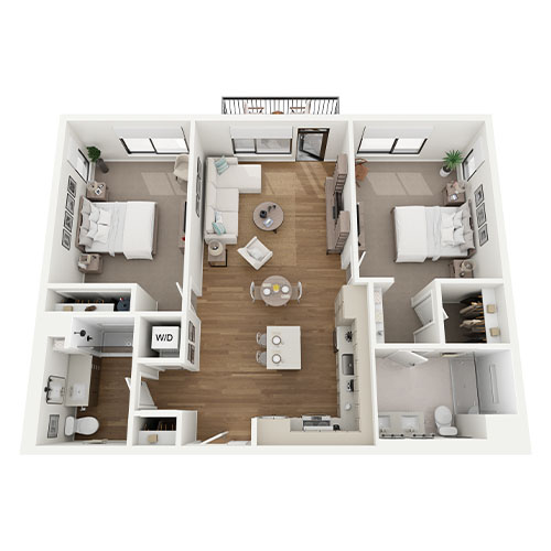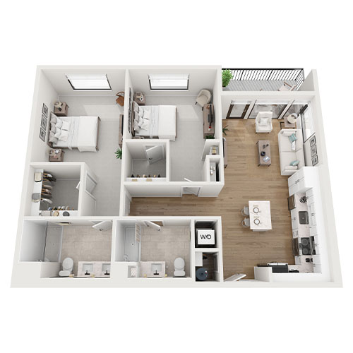 2 Bedroom | 2 Bath | Balcony | 1,277 sq. ft.
