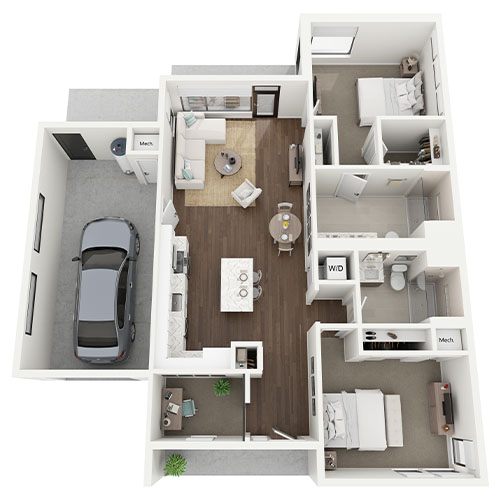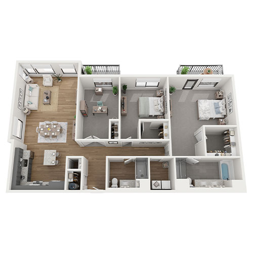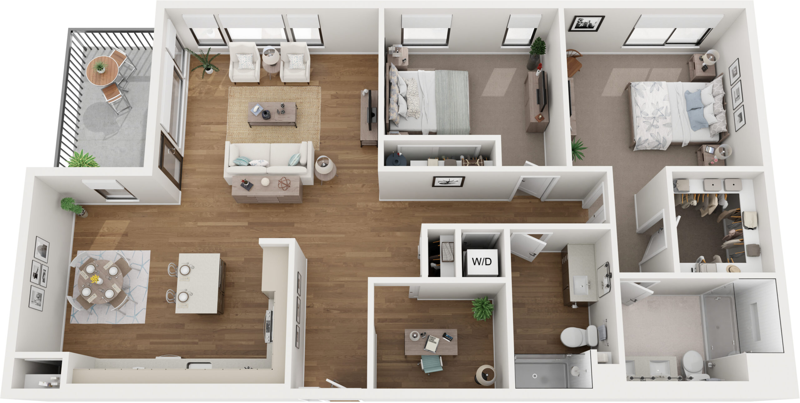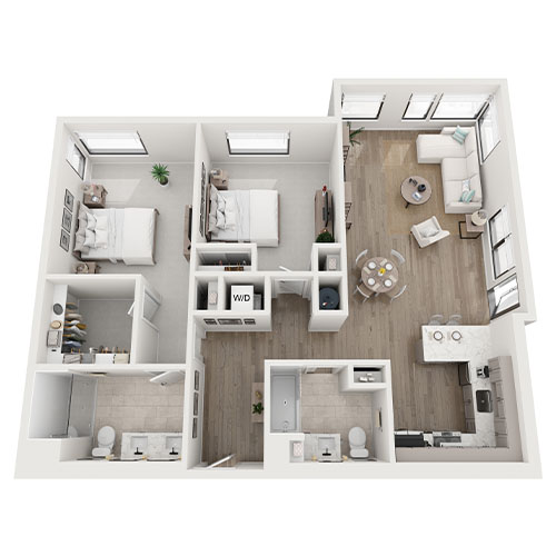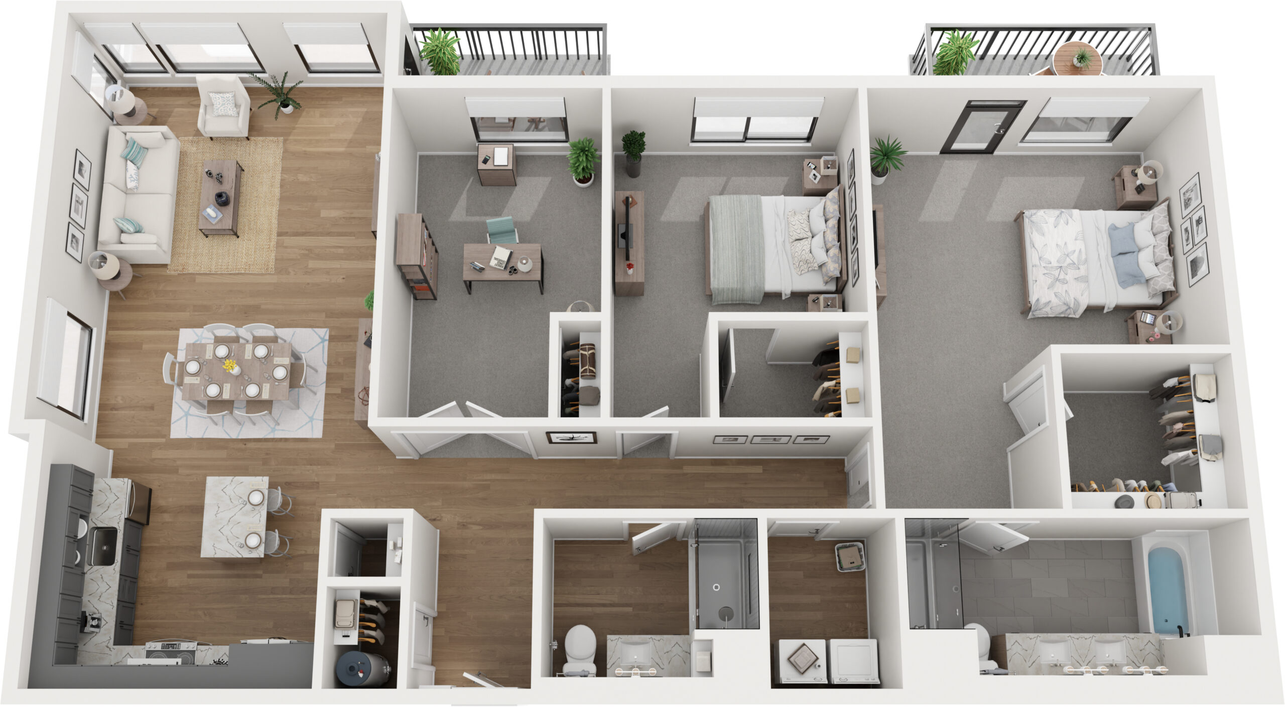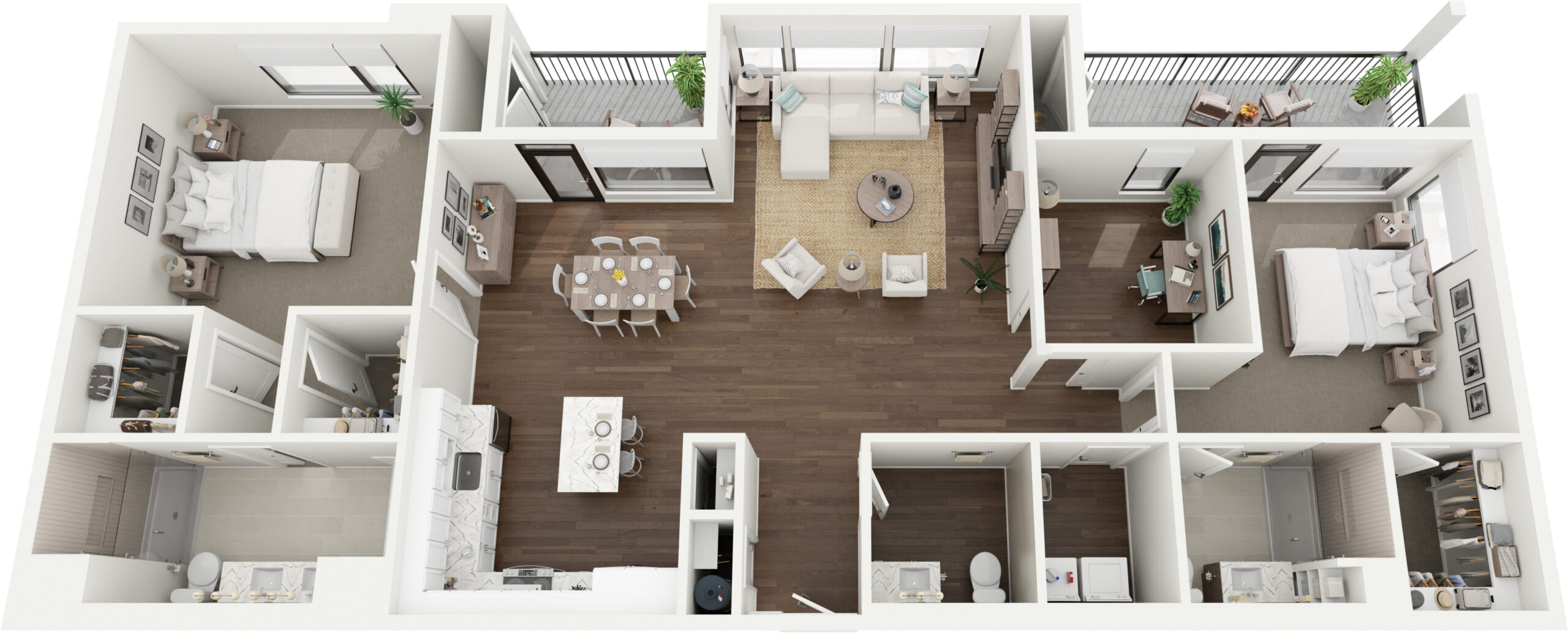 2 Bedroom | 2 Bath | Balcony | 1,277 sq. ft.