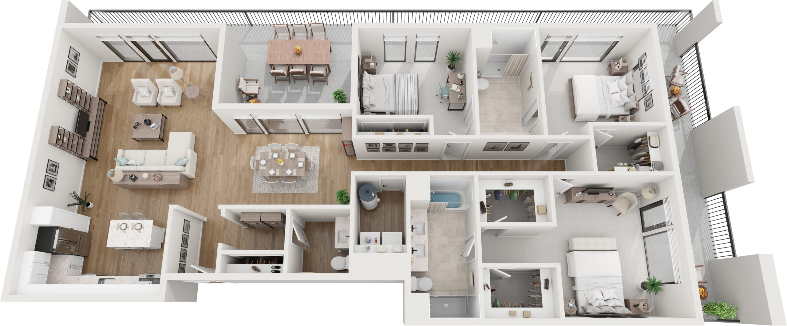 3 Bedroom | 2.5 Bath | Den | Wrap Around Balcony | 2,221 sq. ft.